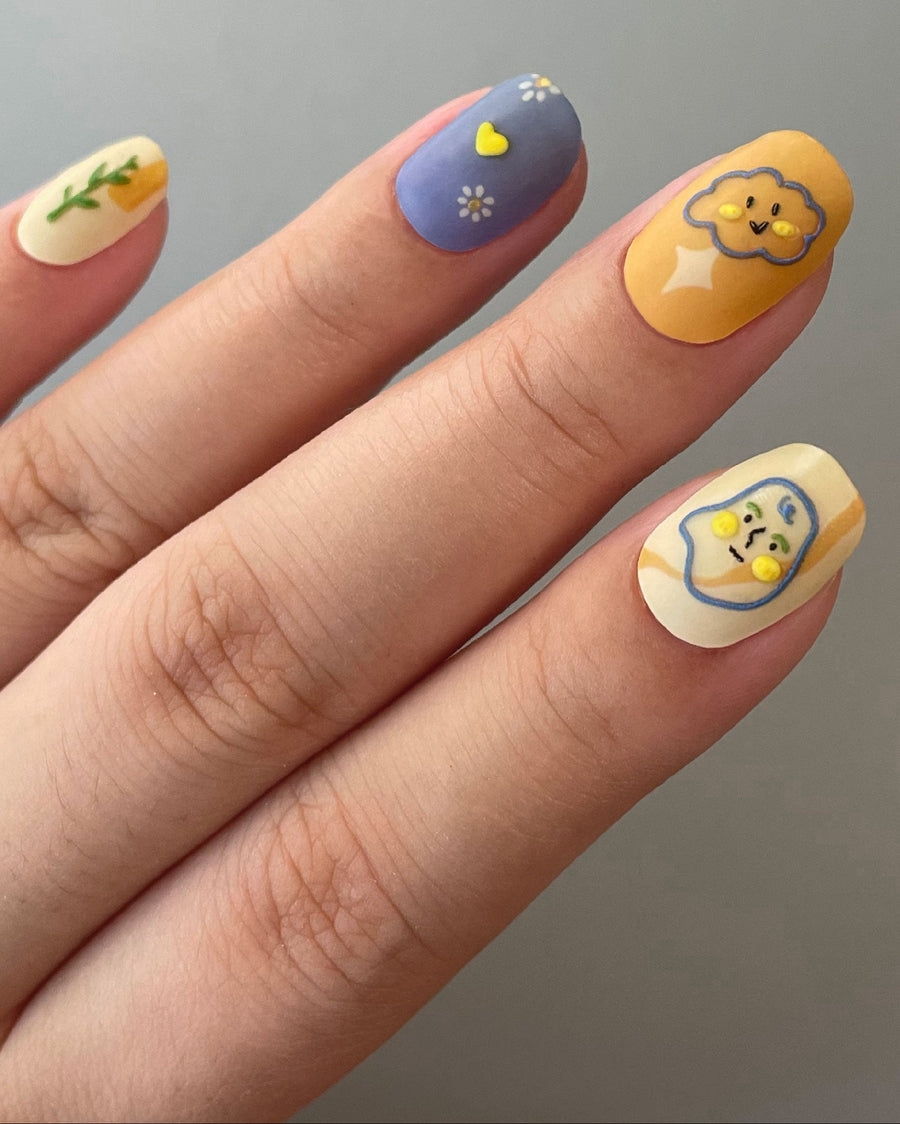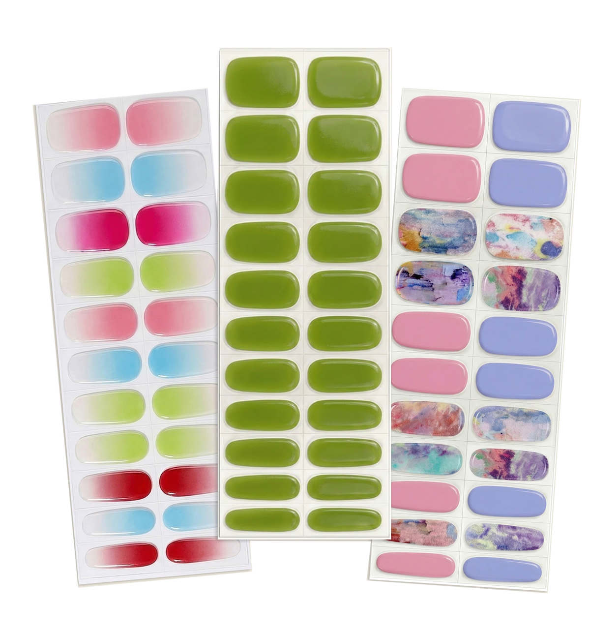 光固化的質感、凝膠的彈性、和貼紙的方便性,做成一款人人都能發揮自我的創作美甲。
