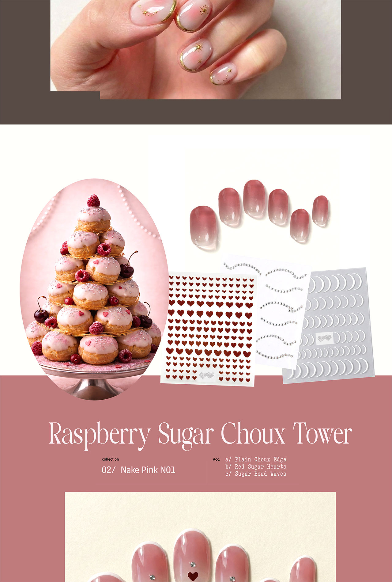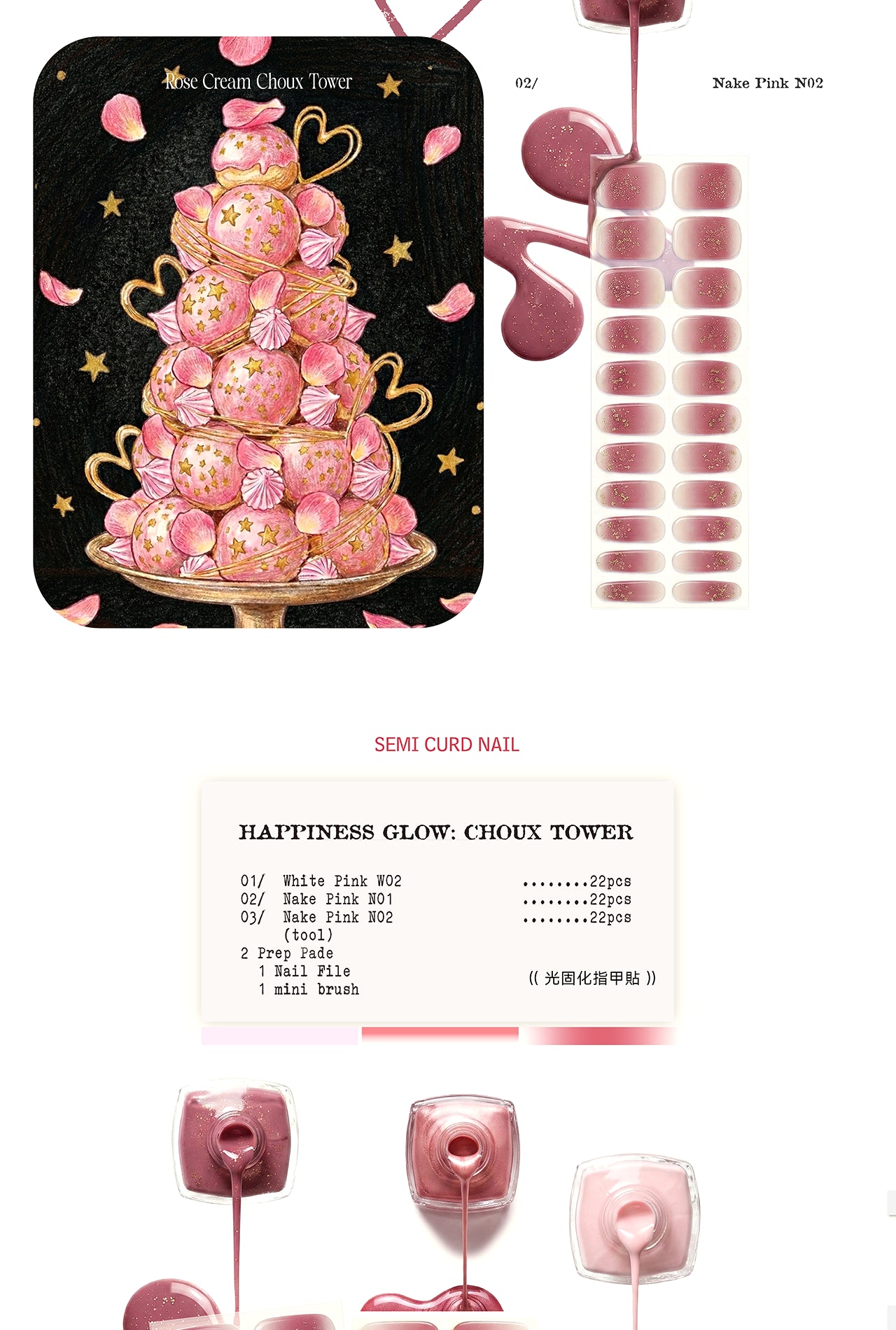 內容: 3款凝膠指甲貼 + 7款飾品 + (美甲燈 OR 封層膠 擇一,請於備註欄備註,若無則默認為燈) + 工具包