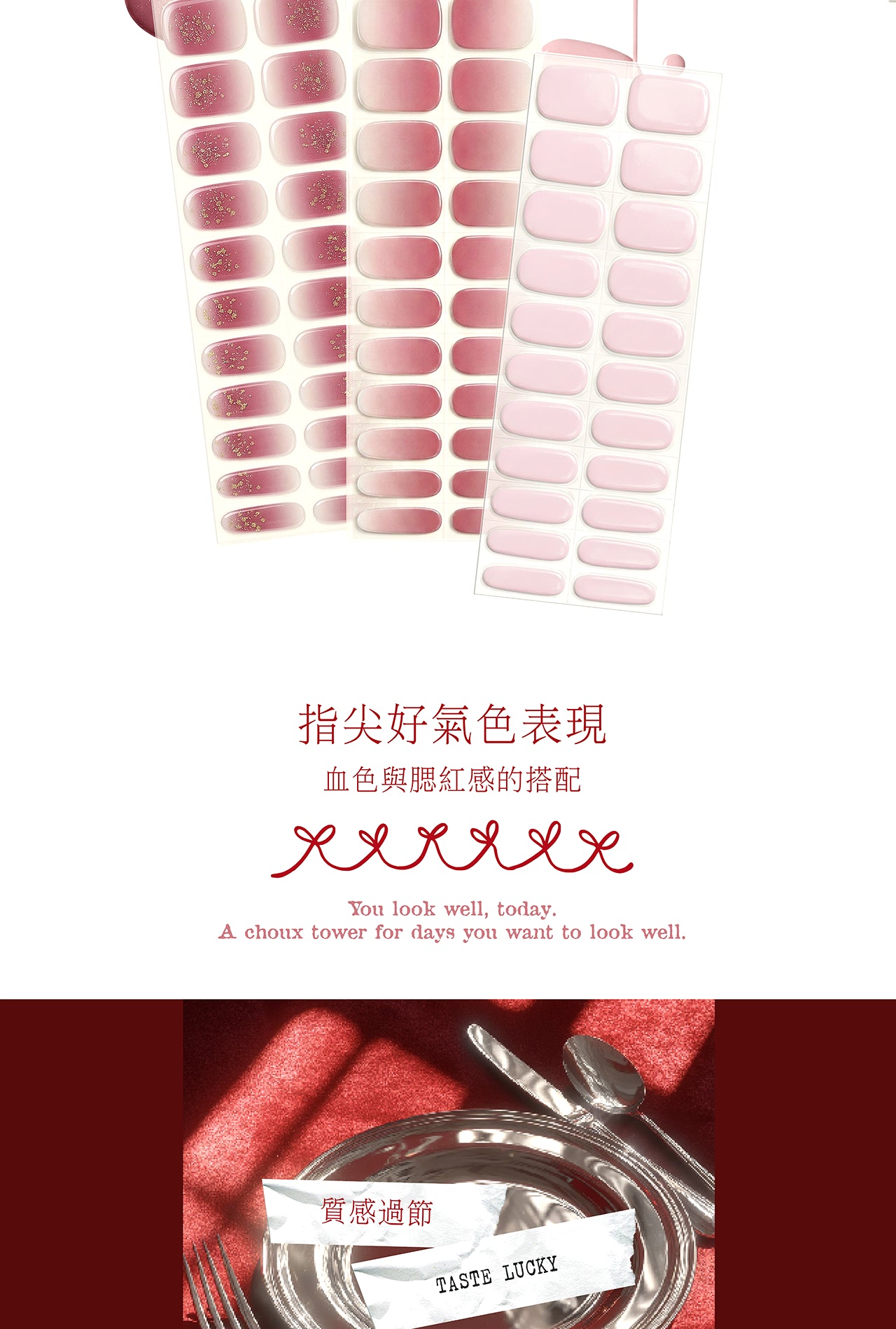 凝膠貼最大特色,不需等待且絕對均勻的指彩表現,維持過程中不需擔心像指甲油一樣的斑駁感