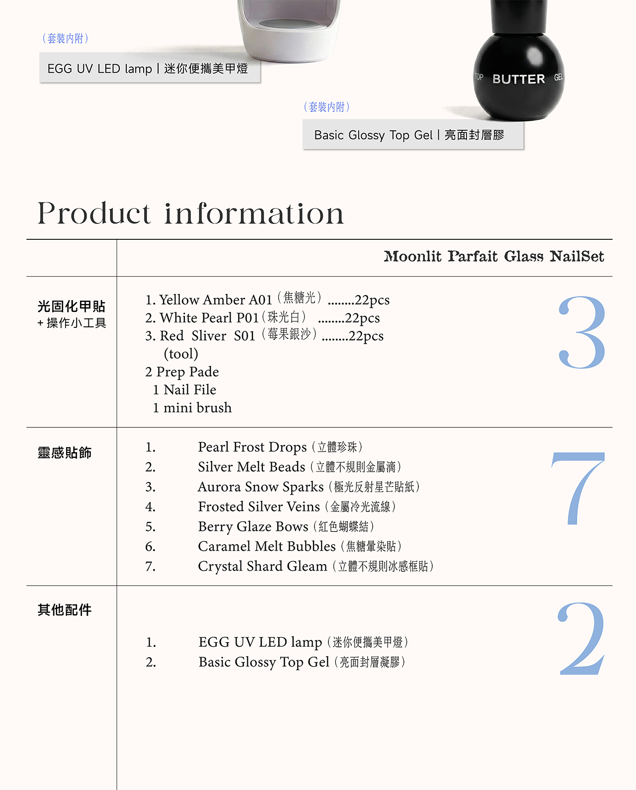 質地輕薄、延展性佳,能牢牢封住貼片邊緣,同時增加透亮度。亮面效果,延長美甲壽命、減少摩擦掉邊。
