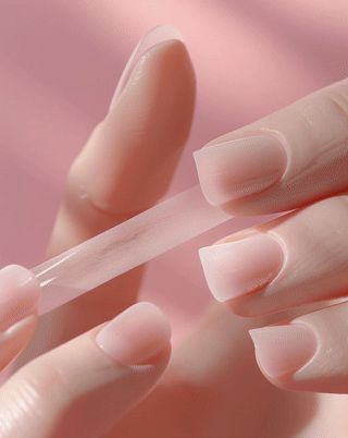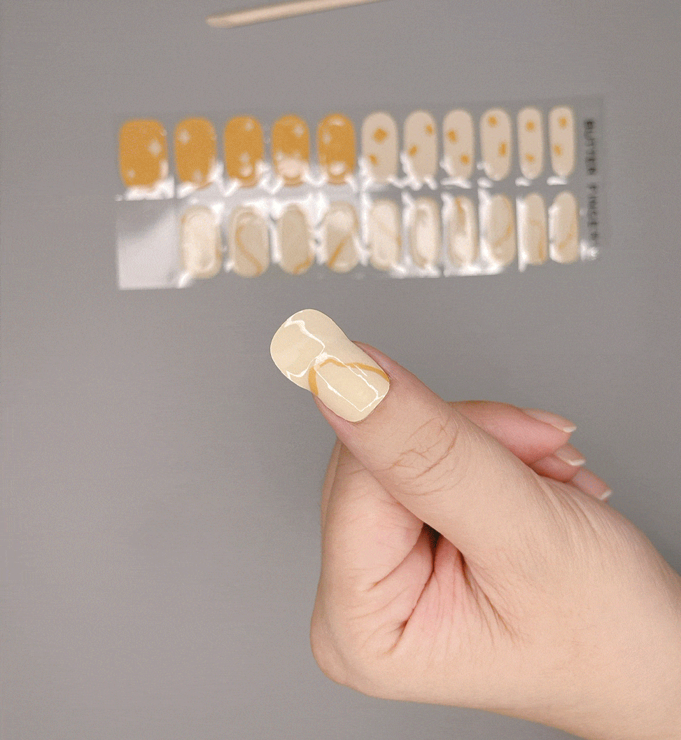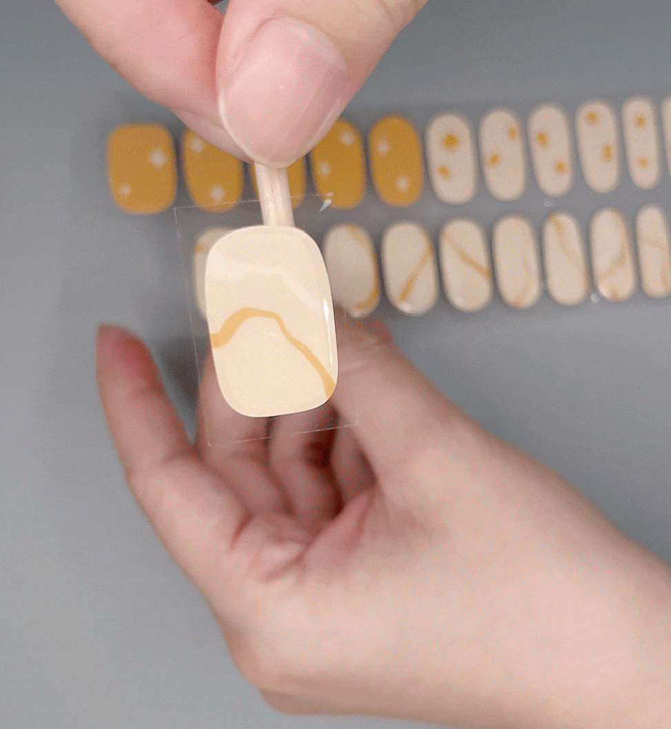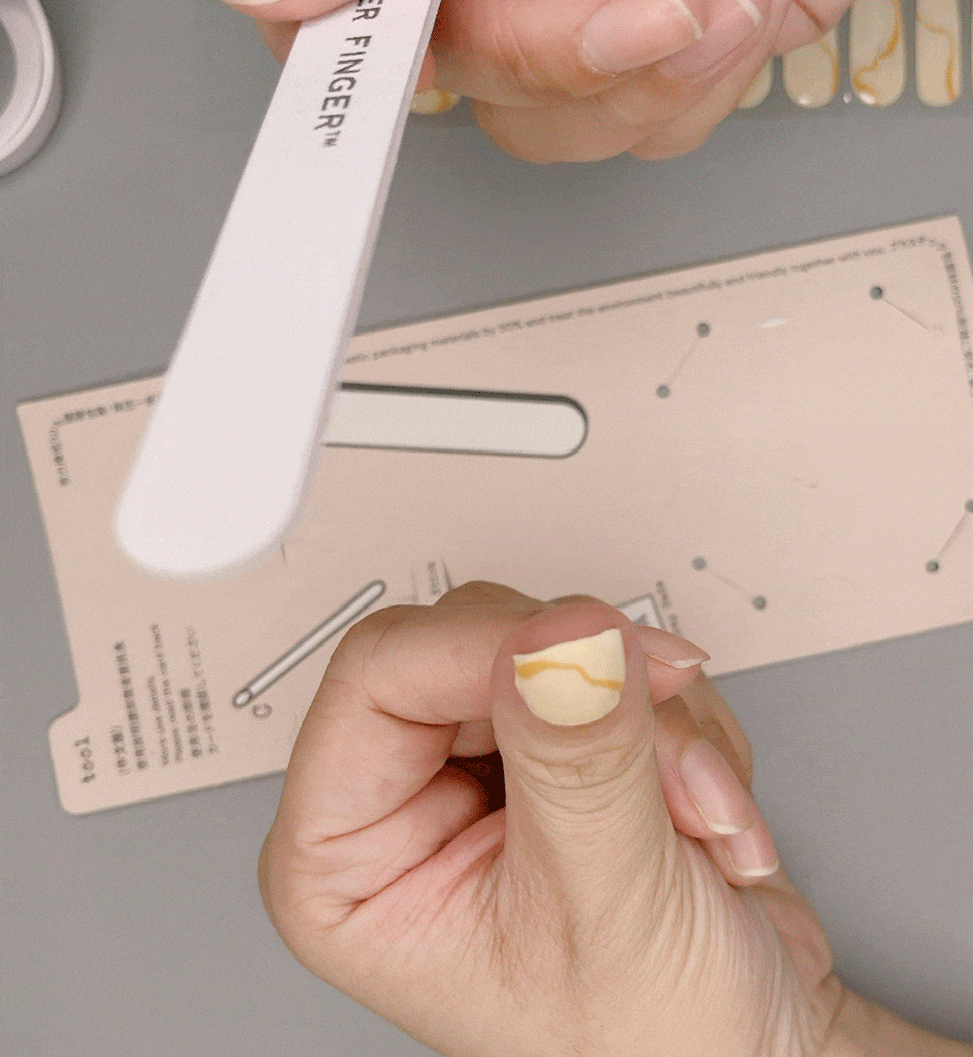專為半固化甲貼膜配置,適度柔軟、不傷甲面。將邊緣按照指甲緣,收尾磨順